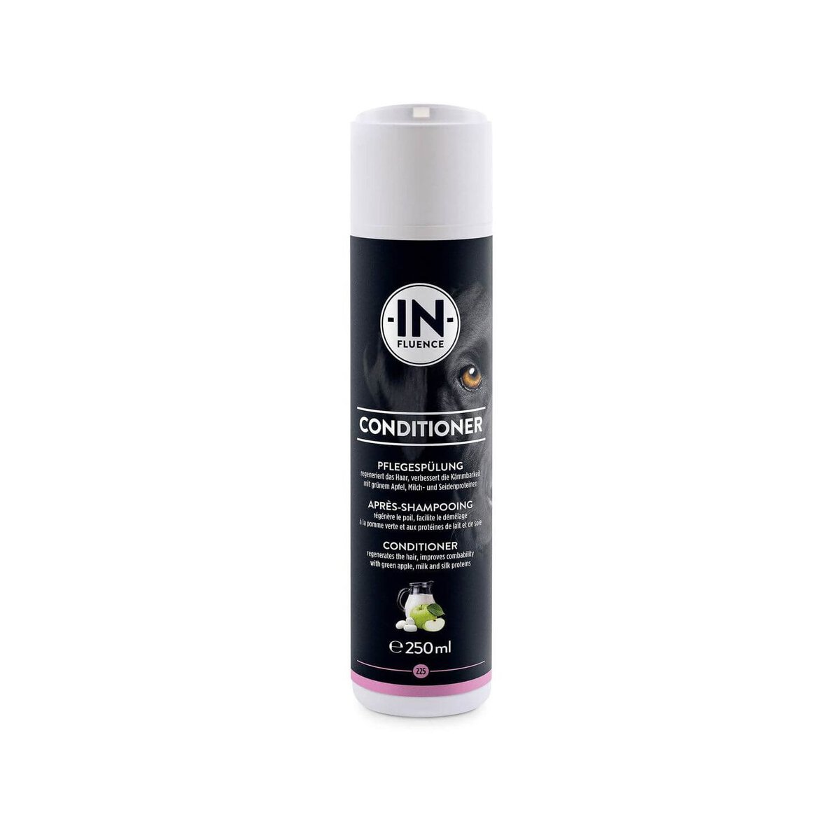 Le conditionneur In-Fluence 250 ml est un après-shampooing intensif spécialement conçu pour les chiens ayant un pelage difficile à peigner, long ou terne. Le parfum frais de pomme verte rend l’application agréable pour vous et votre compagnon à quatre pattes. Cet après-shampooing complète idéalement le shampooing en lissant le pelage terne et en lui redonnant de l’éclat.