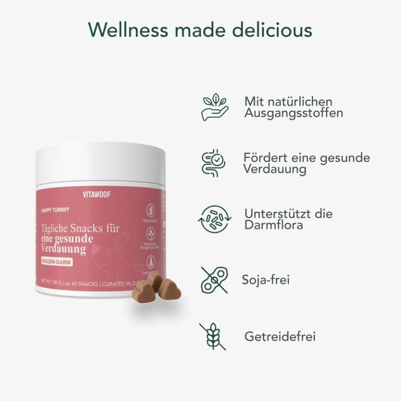 Täglicher Hundesnack zur Unterstützung der Verdauung und des Magen-Darm-Trakts